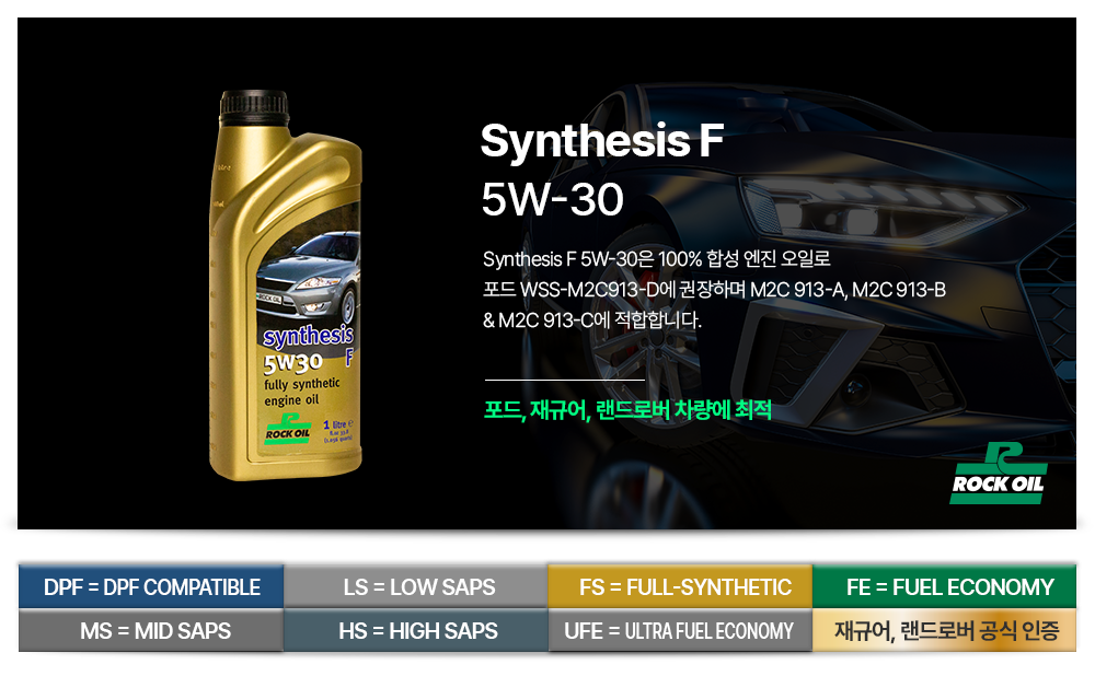 락오일 Synthesis F 5W-30은 100% 합성 엔진 오일로 포드 WSS-M2C913-D에 권장하며