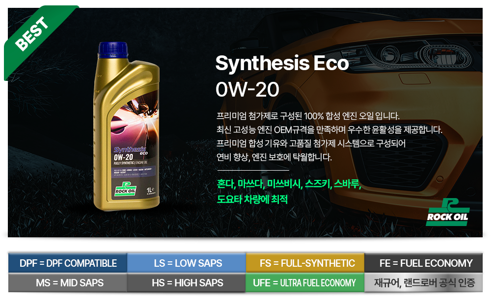 락오일 Synthesis ECO 0W-20은 100% 합성 엔진 오일로 연비 향상을 위한 하이브리드 엔진에 최적화된 저점도 엔진 오일입니다.